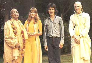 Srila Prabhupada, Patti Boyd, George Harrison and Dhananjaya Prabhu at Friar Park