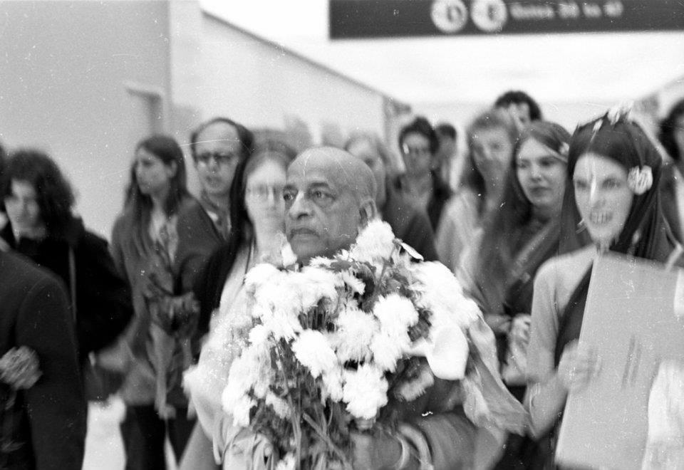 (*Click on photo to see a larger image of Srila Prabhupada at the San Francisco airport.)